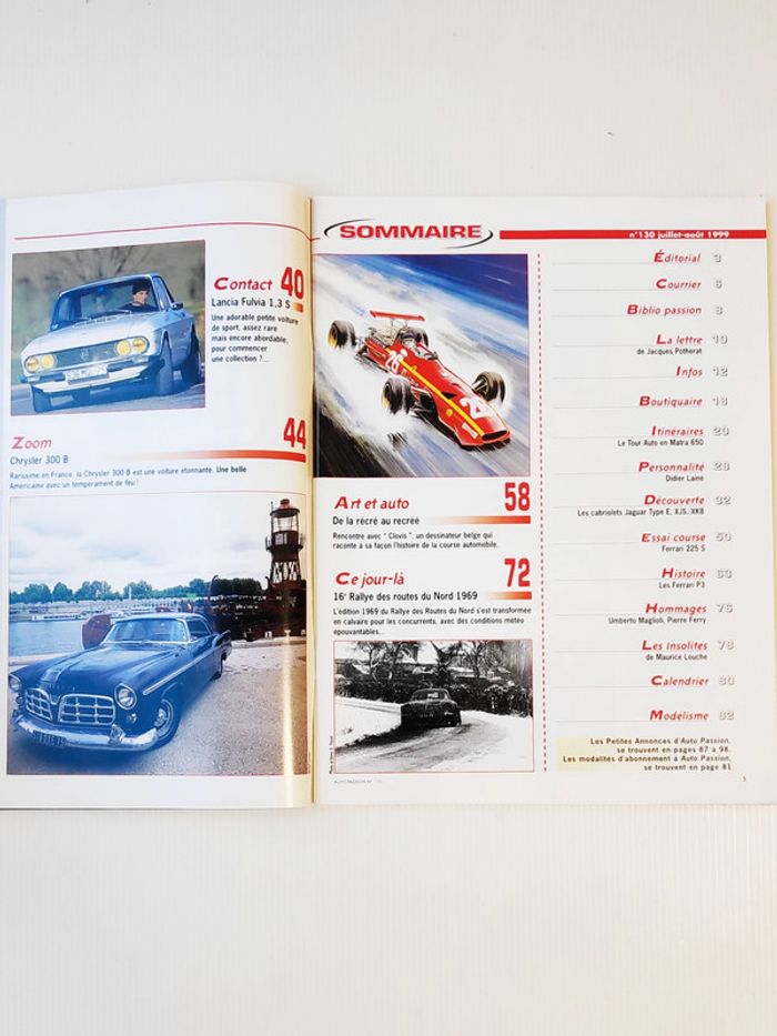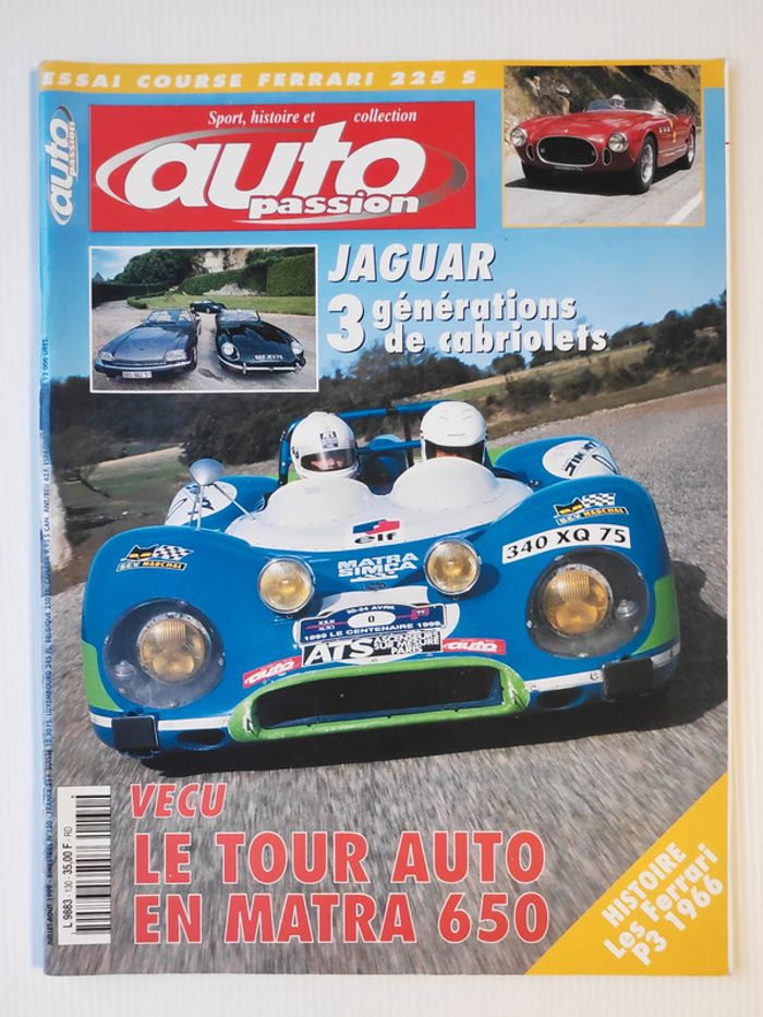 #_AutoPassion_ numéro 130 (été 1999) Lancia Fulvia 1.3 S, Chrysler 300 B, Tour Auto en Matra 650, cabriolets #_Jaguar_ Type E, XJS et XK8, #_Ferrari_ 225 S, Ferrari P3... 100 pages D'autres numéros disponibles dans mon dressing