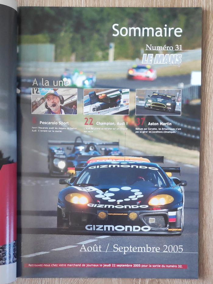 #_LeMansRacing_ numéro 31 (été 2005) #_24hDuMans_ 24 Heures du Mans, ALMS, Petit Le Mans, ELMS, FIA-GT, Grand-Am, endurance. 24 Heures du Mans 2005, Pescarolo Sport... 68 pages De nombreux numéros disponibles jusqu'au n°75, n'hésitez pas à me contacter si vous cherchez un numéro précis