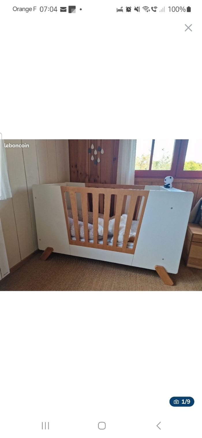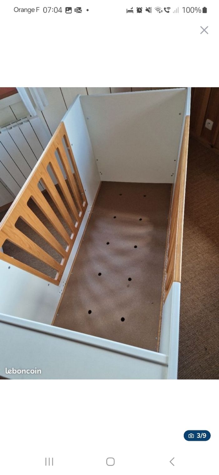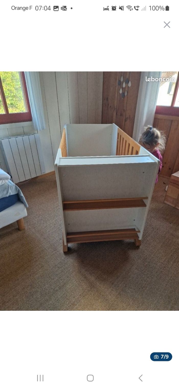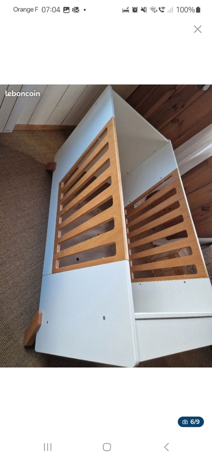 Lit à barreaux Verbaudet évolutif La planche mon et descend selon l'âge de l'enfant. Les barreaux sur le côté peuvent s'enlever. Le matelas est Made in France Ma fille l'a utilisé jusque ses 3 ans.