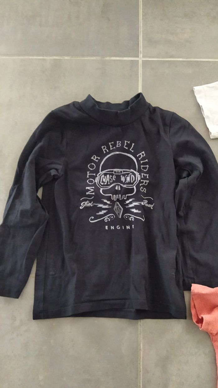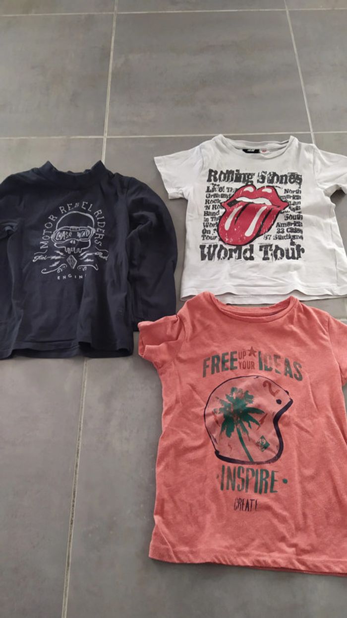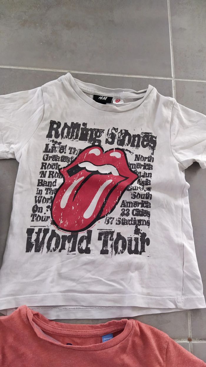 1 haut manches longues col haut noir orchestra 1 tee-shirt brique Okaïdi 1 tee-shirt Rolling Stones H&M 104 cm Lot indissociable #4ansgarçoncamilled974