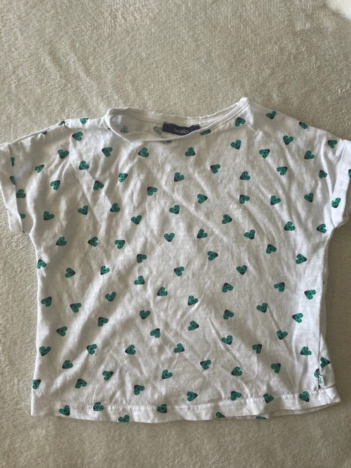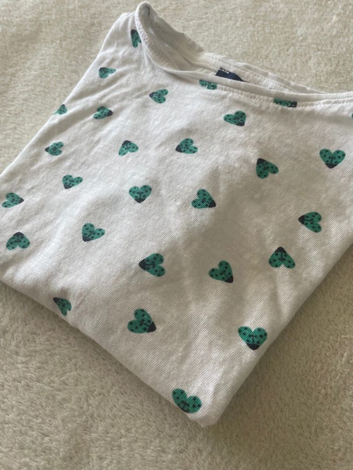 Petit tee shirt blanc avec petits cœur vert