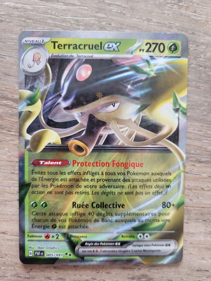 Carte pokémon Terracruel ex 005/091 de destinées de Paldea. Carte sortie de booster et mise sous sleeve.