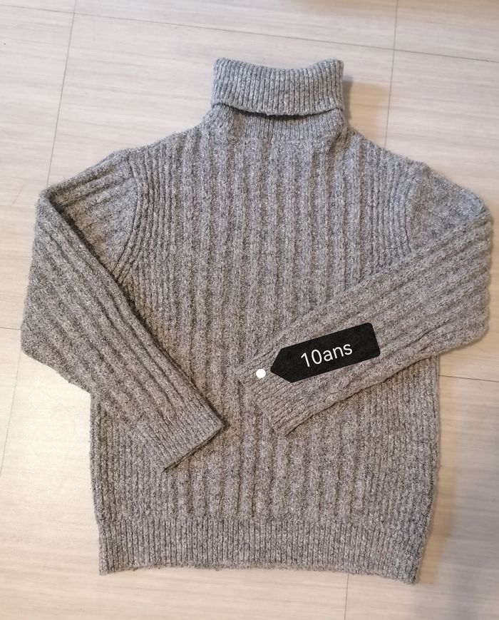Pull coll roulé garçon, marque Zara. Gris. Taille 10ans (140cm). 59%polyester. 20%acrylic. 20%coton. 1%elasthane. Porté. 7. 50€