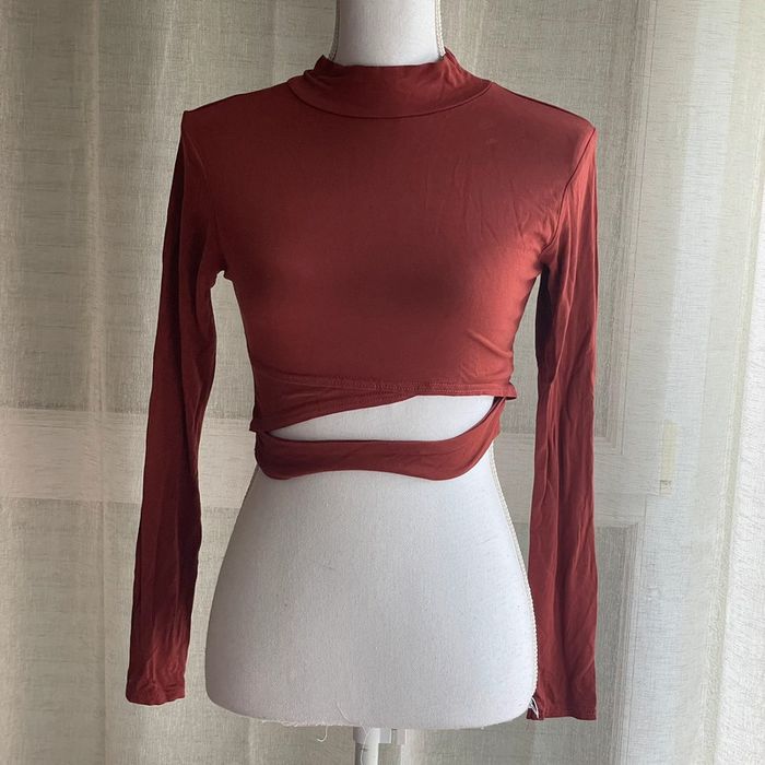 Crop top col roulé couleur brique - photo numéro 2