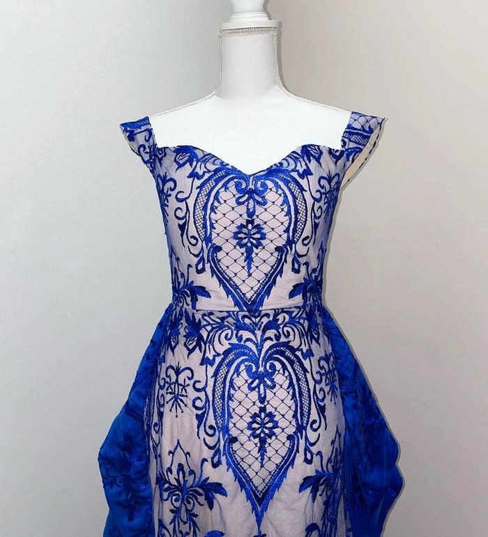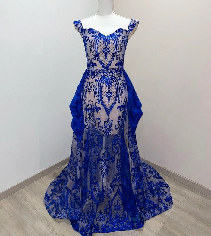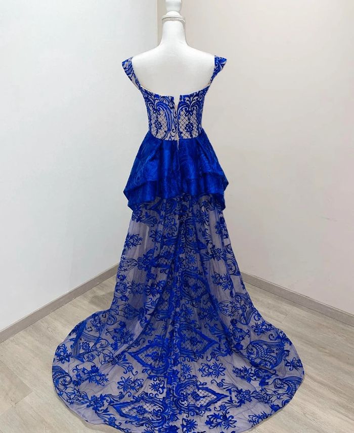 Robe bleu avec joli traîne idéal pour un fiancaille ou autre, à peu près taille 34#peknezrobesdesoirees #pekneztaille34