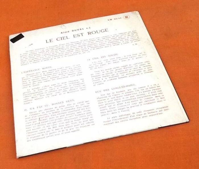 Vinyle 45 tours    Aimé Duval s.j    Le ciel est rouge   (1958) - photo numéro 6