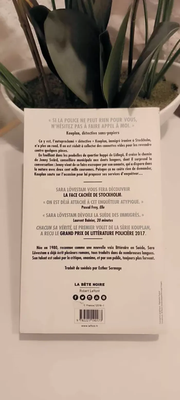 Ca y est, I'autoproclamé "détective" Kouplan, immigré iranien à Stockholm, n'a plus un rond. Il en est réduit à collecter des cannettes vides pour les revendre contre quelques pièces. En fouillant dans les poubelles du quartier huppé de Lidingö, il croise le chemin de Jenny Svärd, conseillère municipale aux dents longues, dont il surprend la conversation : Jenny vient de se faire escroquer par son amante, qui a disparu dans la nature avec deux cent mille couronnes. Puisque ça ne coûte rien de demander, Kouplan saute sur l'occasion pour lui proposer ses services d'enquêteur... Biographie: Née en 1980, reconnue comme une nouvelle voix littéraire en Suède, Sara Lövestam a déjà écrit plusieurs romans, tous traduits dans de nombreuses langues. Son talent est salué par la critique, unanime, et par son public, toujours plus fervent.