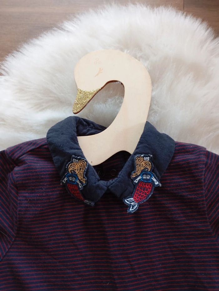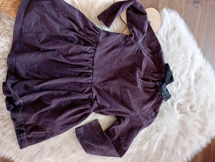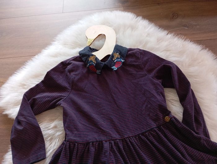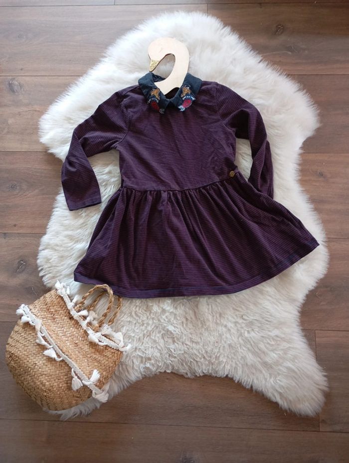 Petite robe chic manche longue Col avec sirène brodé 🧜‍♀️ Effet rayure marine violet parfaite pour la rentrée scolaire une cérémonie mariage baptême communion anniversaire ou Noël #izianatroisans #ikks