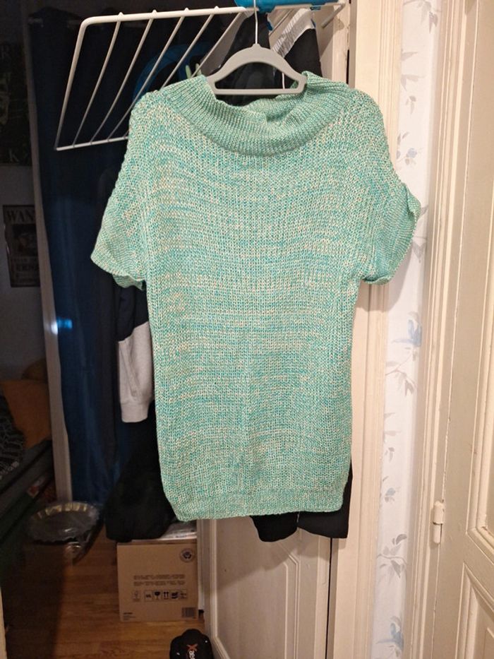pull manche courte femme couleur vert menthe taille 42 confectionné moi même