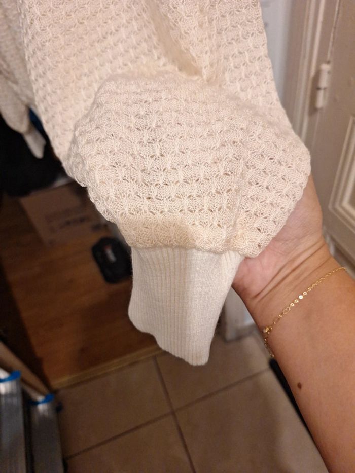 Pull femme blanc cassé manche chauve souri taille 42 confectionné moi même