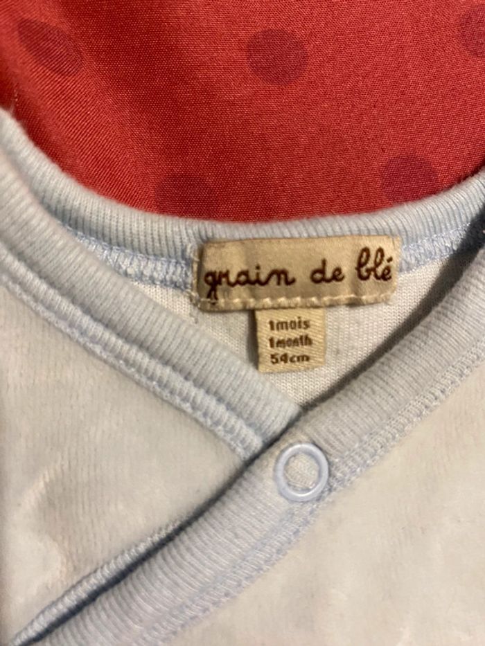 Pyjama bleu clair fermeture sur le côté et entre les jambes taille 1 mois marque grain de blé, en très bon état #vetement1moisVero66xx