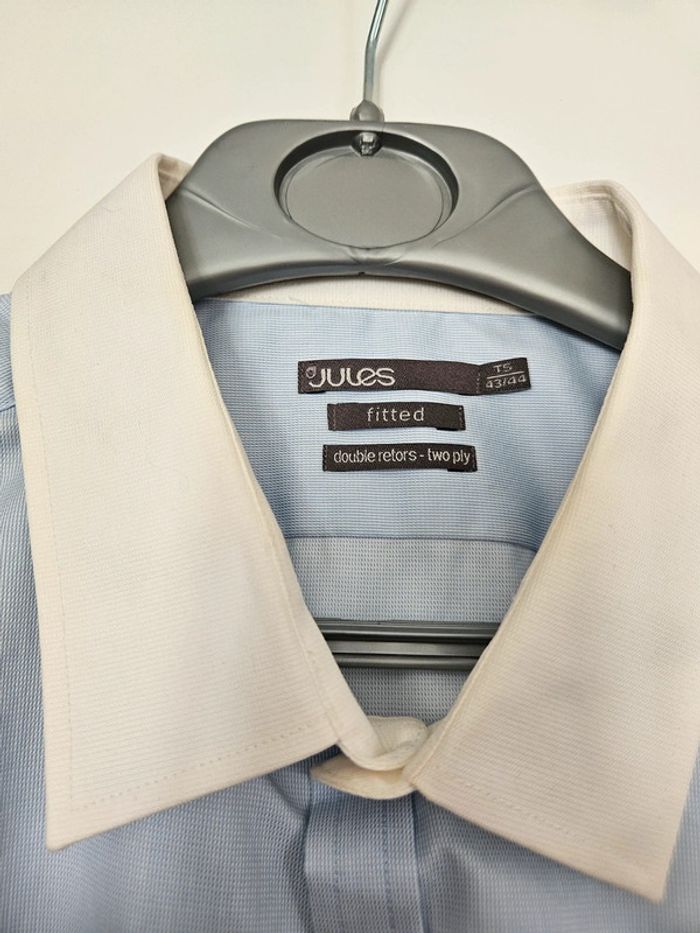 Chemise de la marque Jules. Taille 5 (43/44) Quelques imperfections voir photos. Notamment le col qui a un peu jaunie.