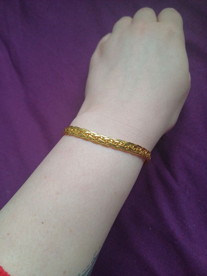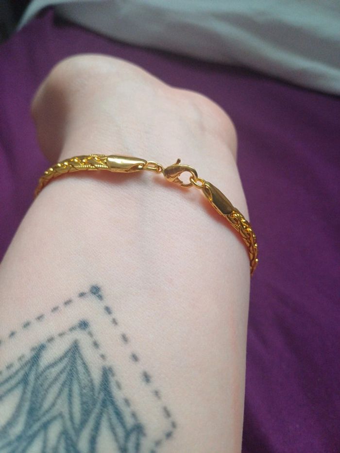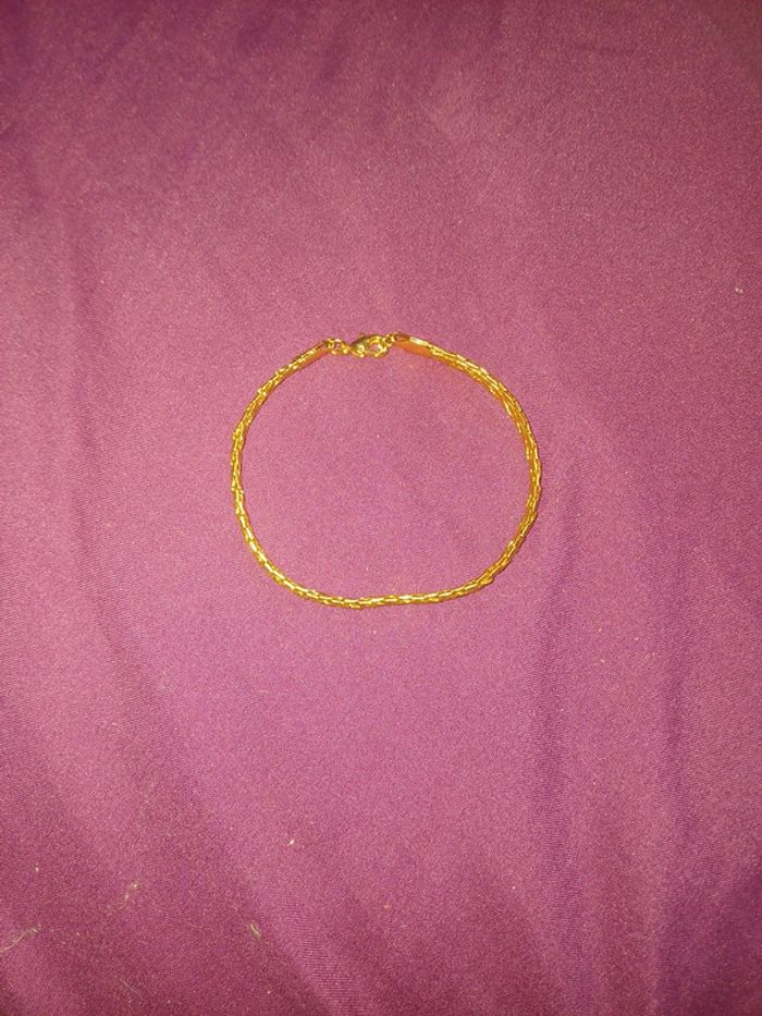 Très bon état jamais porté sauf pour le photo Peut convenir à un bracelet de cheville également 21 cm Trop grand pour moi Faux or