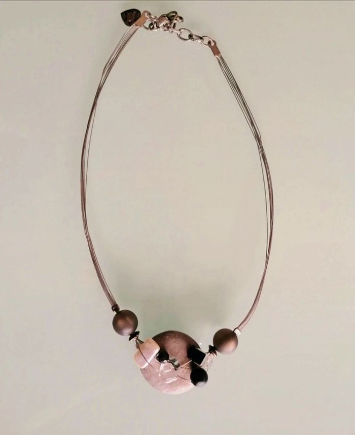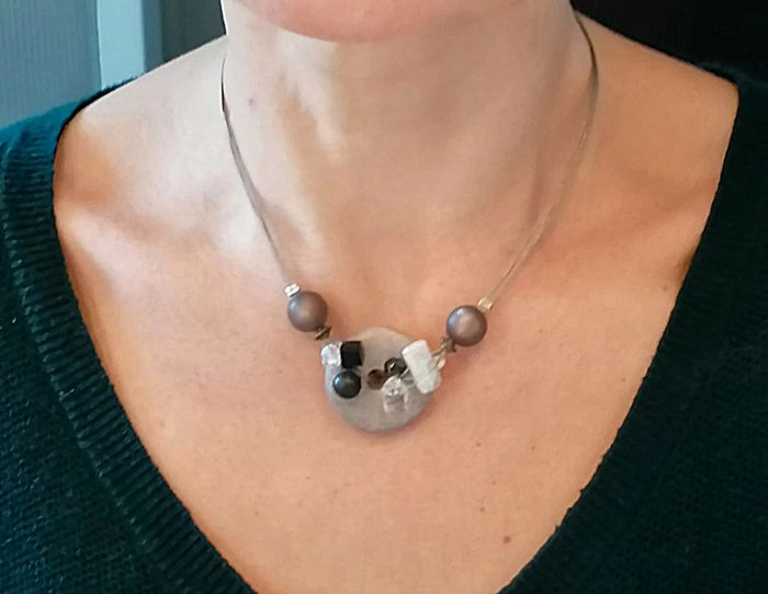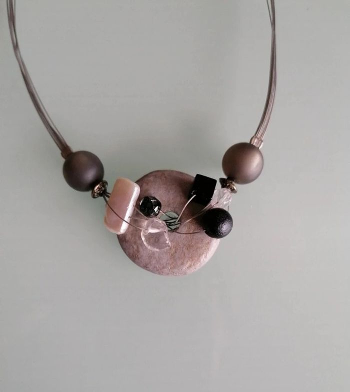 Collier ton gris fait par une créatrice dans les Alpes Réglable en longueur: 17 cm au plus court 20cm au plus long