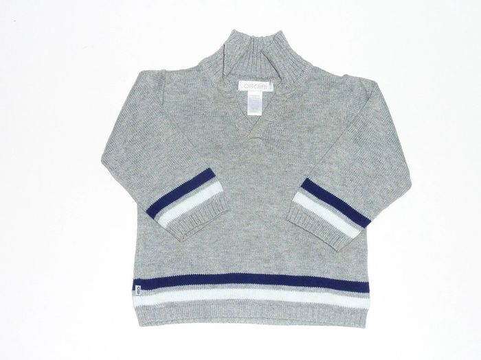Pour voir mes annonces dans cette taille, tapez #karinelillegarcon3mois Pull Obaibi gris en parfait état, liseré marine et bleu ciel.