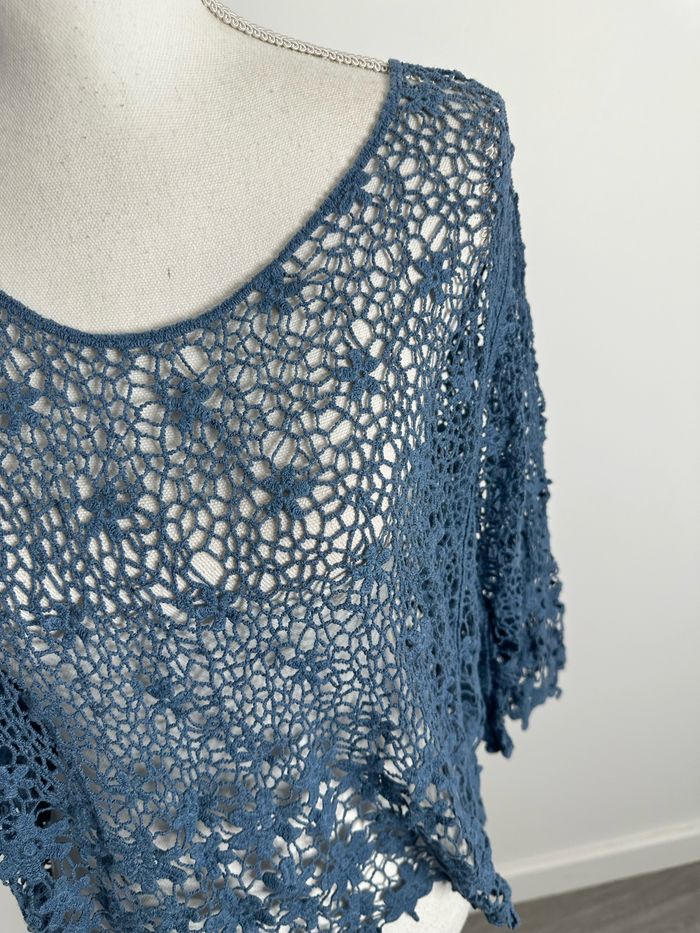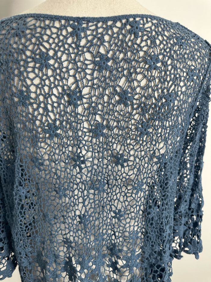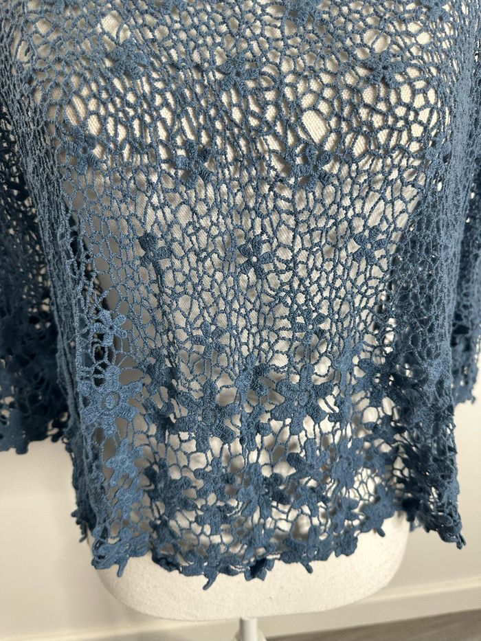 Blouse en crochet broderies bleue gris Vintage T38 M