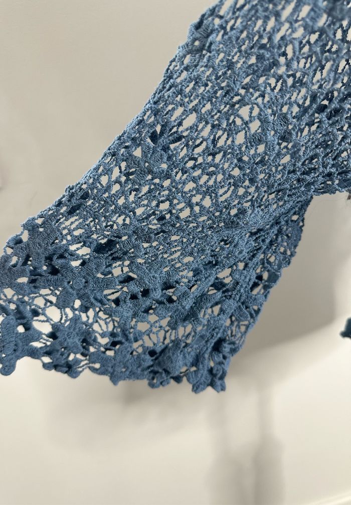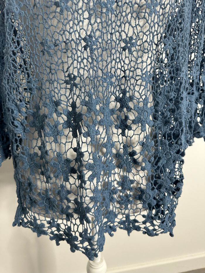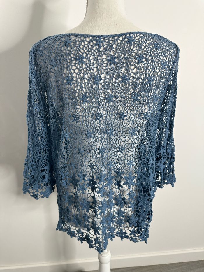 Blouse en crochet broderies bleue gris Vintage T38 M - photo numéro 3