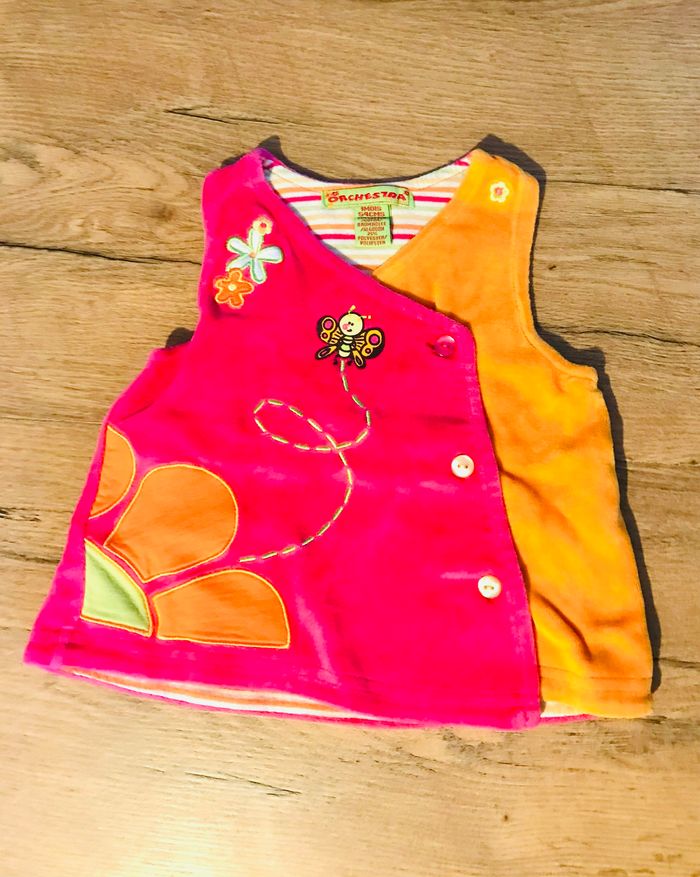 Robe tunique chaude Orchestra Rose et orange style velours Taille 1 mois