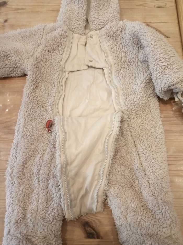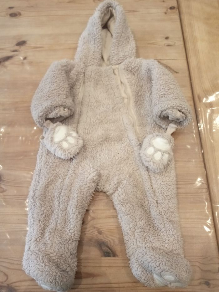Combinaison petit ours. Avec gants qui peuvent s'enlever avec boutons pression.
