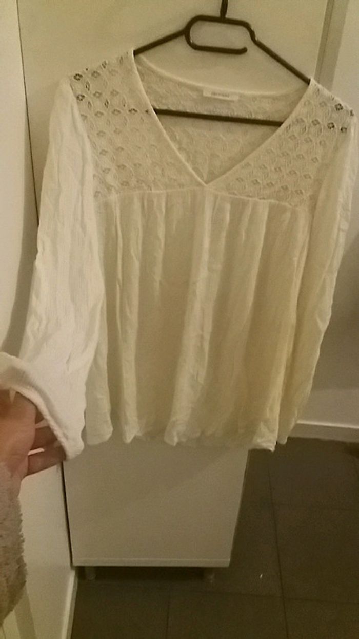 #blouse #promod #taille3840 #taillem #tresbonetat #blanccasser sera repasser pour la vente 😉 #dentelle
