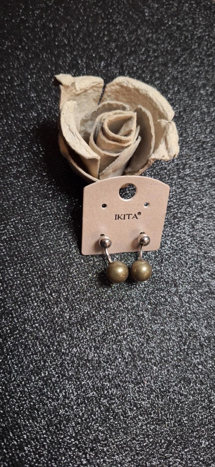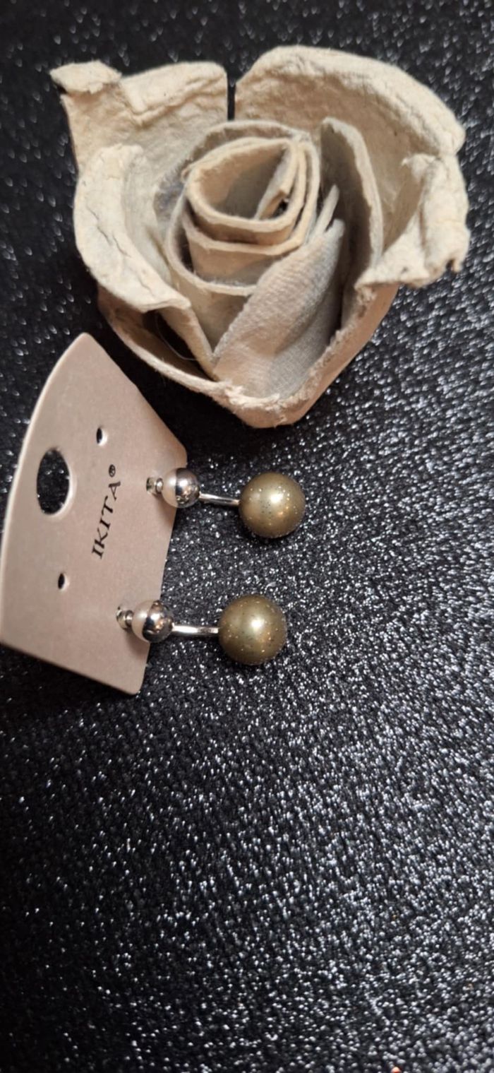"AU COIN BOUTIQUE " BIJOUX N°232 boucle d oreille Boule petite argenté Grosse kaki paillette Clou Neuve Ikita 5€ #kelly_bijoux #kelly_aucoinboutique