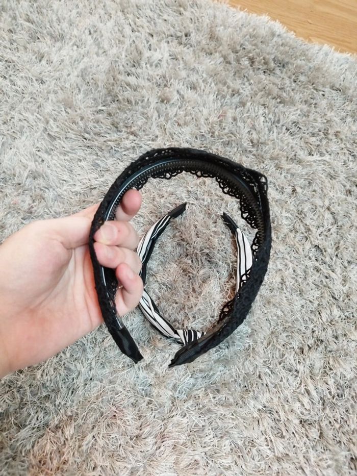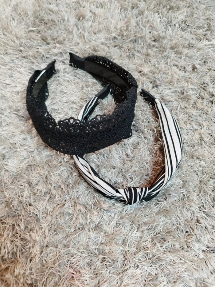Lot de deux serre tête femme ou fille couleur noir dentelle et noir à rayures blanches Bon état Réductions sur les lots activé ☺️ #urgent #serretete #femme