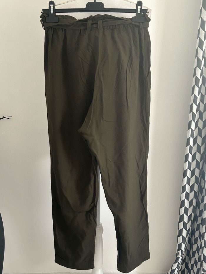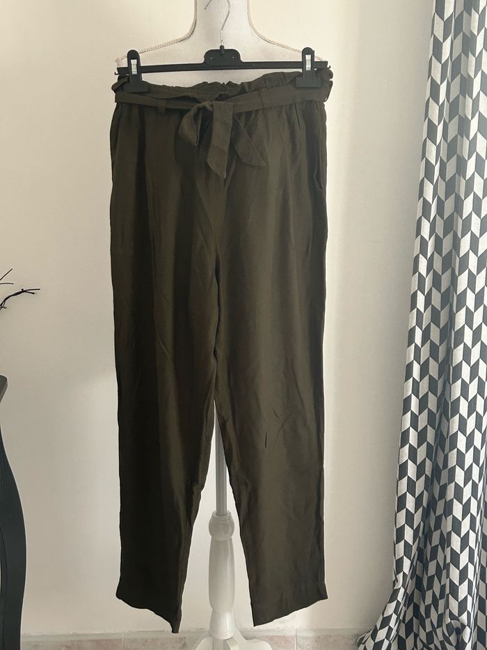 Description : 👖 Type : Pantalon taille haute 📏 Taille : 36 🎨 Couleur : Vert foncé 👜 Détails : Poches pratiques et ceinture en tissu assortie fournie ⭐ État : Excellent état Ce pantalon H&M en taille 36, couleur vert foncé, est un modèle taille haute avec poches et une ceinture en tissu pour accentuer la taille. Parfait pour un look moderne et élégant. En excellent état. Hashtags : #PantalonHautTaille #HM #Taille36 #VertFoncé #CeintureEnTissu #ExcellentEtat #L43