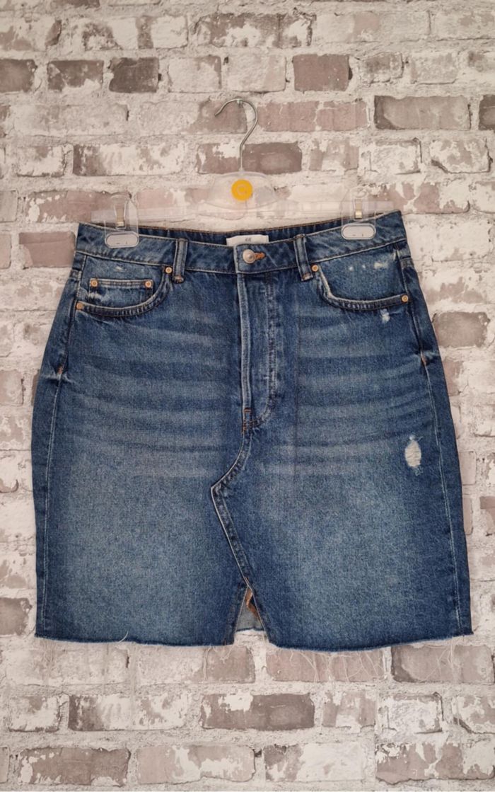FEMME 40/ L N°2535 Jupe jeans Bleu clair , delave Destroyer Bouton Longueur 48,5 cm 100% coton Taille 40 / L H&M 6,50€ #kelly_femmeT40