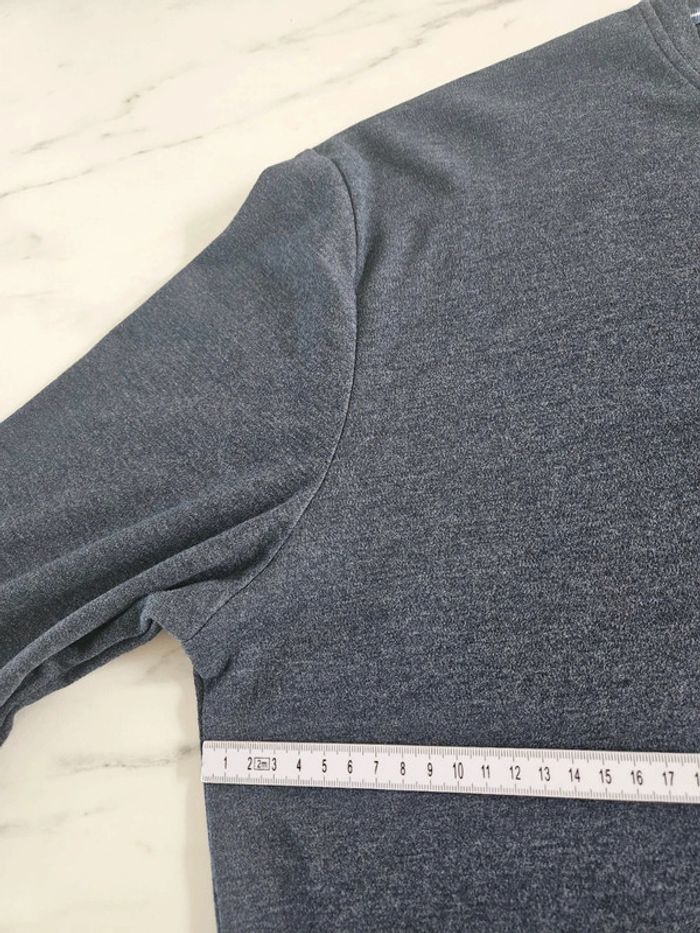 Sweat manches longues. Bleu chiné. Est est à l'état neuf. Juste passé en machine et repassé. Dimensions sur les photos