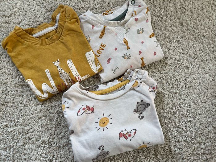 Lot de 3 teeshirts manches longues Marque Tex Taille 12 mois Légère tâche au niveau du col pour le dernier (voir photo)