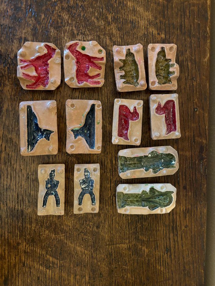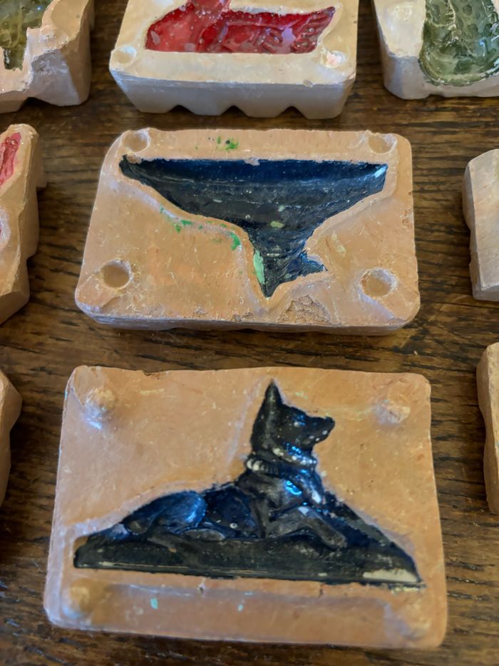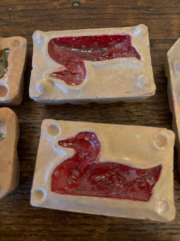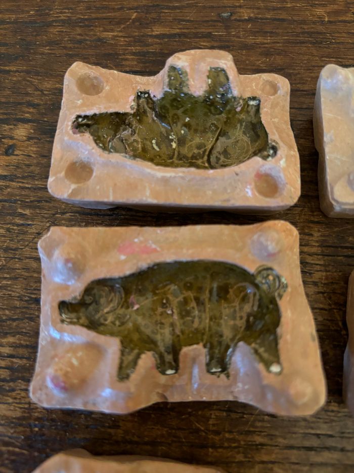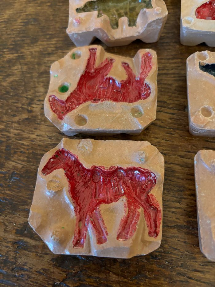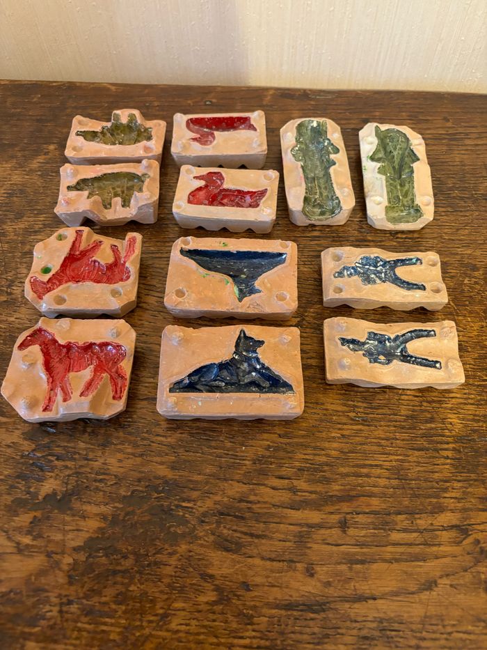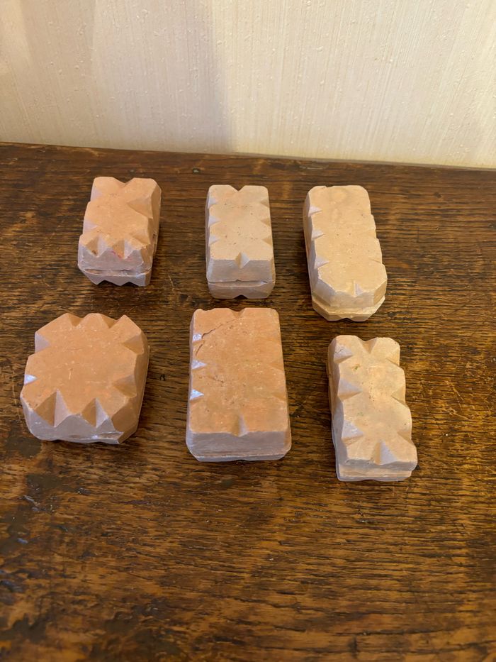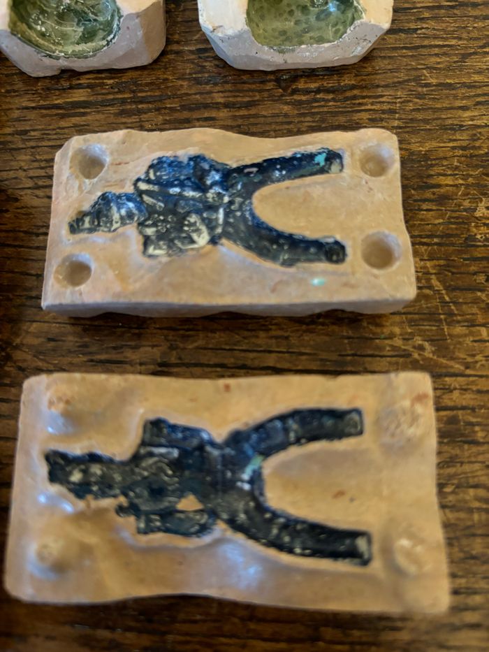 Vends lot de 6 anciens moules en terre cuite pour jeu de moulage.