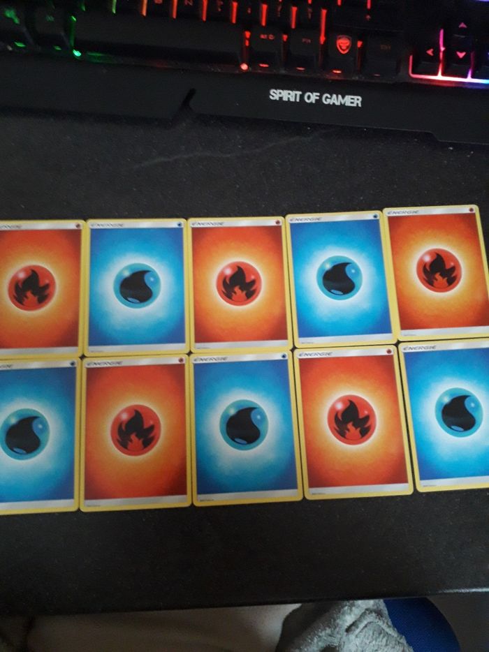 Lot de 10 cartes Pokémon neuves énergie 2017 5 feu et 5 eau