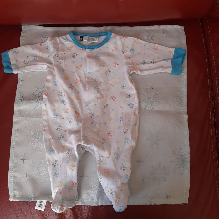 Pyjama Disney baby; motifs Winnie l'ourson; taille naissance. Fermeture devant et entre- jambes par boutons-pression métalliques. 100% coton // voir photos pour détails