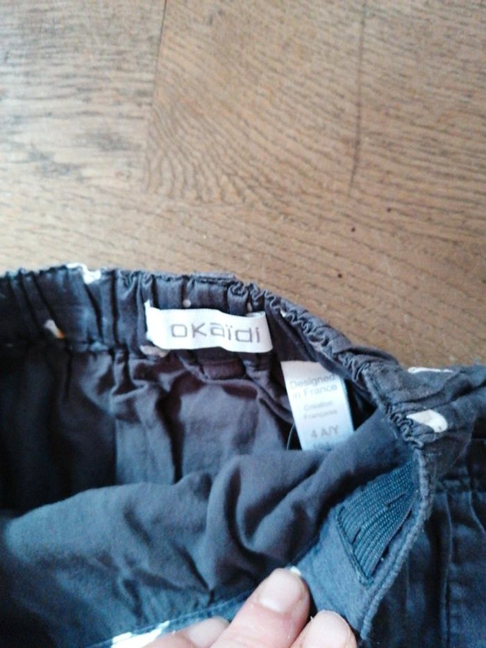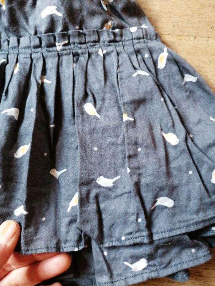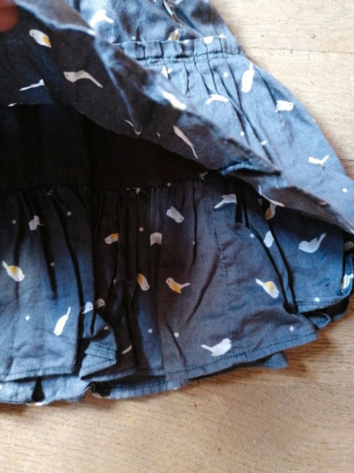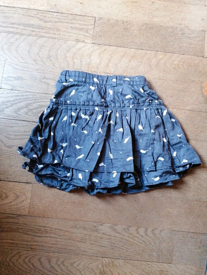 Jupe à volants de marque okaidi. Taille 4 ans. Élastique pour régler la taille. Grise à motifs oiseau blanc et jaune Très bon état.