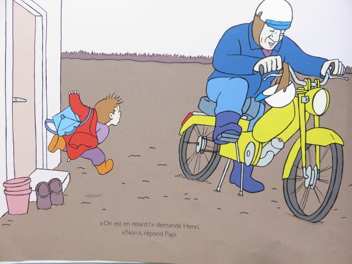 ⚠️ ÉTAT : Très bon état + étiquette d'abonnement au dos. ⚠️ DÉTAILS : Album grand format broché, couverture souple. Couverture souple ⚠️ RÉSUMÉ : Quel enfant aime arriver en retard à l'école ? Aucun ! C'est la honte. Voilà pourquoi Henri, ce matin où ses parents sont malades et restent cloués au lit, cherche à tout prix une solution. Heureusement qu'il sait téléphoner ! Grâce à son Papi et à sa fabuleuse mobylette, mais aussi grâce à sa propre audace, Henri traverse des paysages enchanteurs, fait des rencontres, apprend des noms d'oiseaux et finit par arriver... un peu en retard, mais avec un nouvel ami qui a beaucoup à apporter aux enfants. ❤️ MON AVIS : Des ingrédients qui plairont aux enfants : école, moto, élan, aventure mouvementée. Une histoire tout droit sortie de l'imagination d'un enfant. 📦 LIVRAISON : Envoi ou remise en main propre sur Lyon