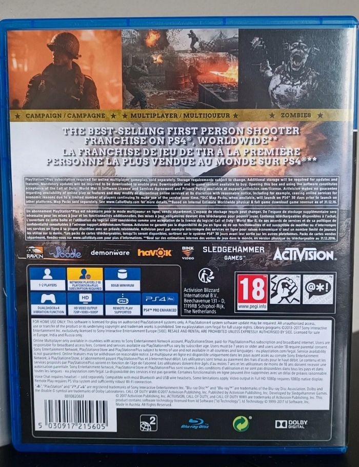 Jeu PS4 call of duty WWII