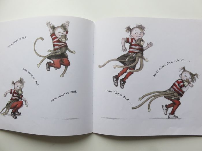 💰 PRIX FIXE quelque soit le nombre d'articles du dressing ⚠️ ÉTAT : Très bon état ⚠️ DÉTAILS : Album grand format broché, couverture souple. ⚠️ RÉSUMÉ : Une petite fille et son singe en peluche s'en vont voir des manchots, des kangourous, des chauves-souris et plein d'autres animaux au comportement rigolo... que la petite fille et son singe imitent à souhait ! ❤️ MON AVIS : L'intérêt de ce livre se trouve dans la répétition des courtes phrases, ce qui est un super bonus pour débuter la lecteur en cycle de maternelle ou tout début de CP. Les dessins sont simples mais efficaces. on le réserve aux plus petits qui seront ravis de deviner l'animal derrière la page 📦 LIVRAISON : Envoi ou remise en main propre sur Lyon