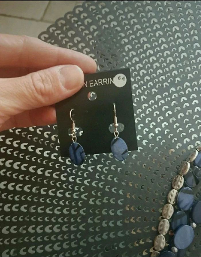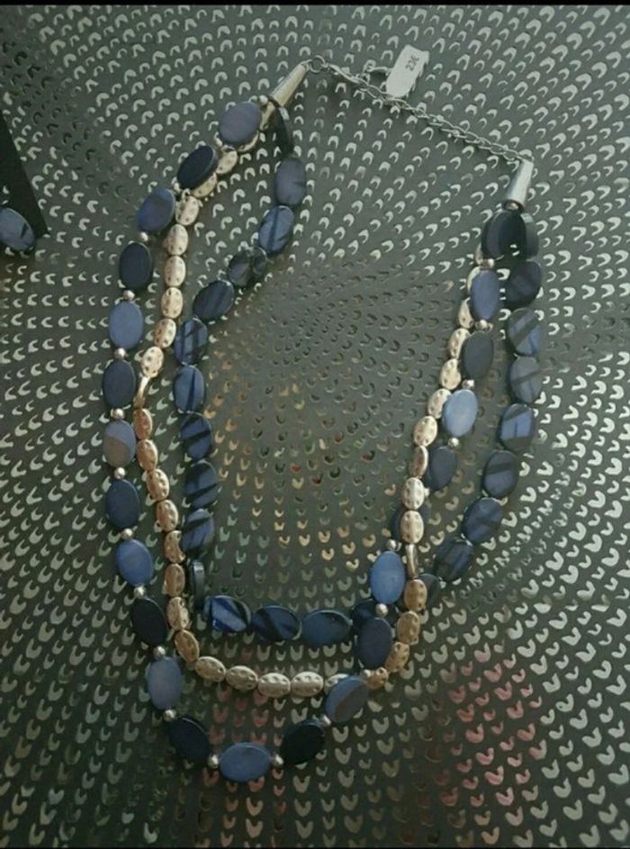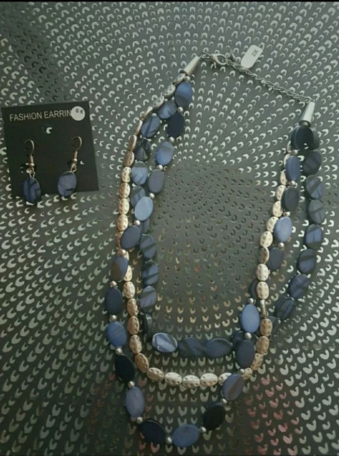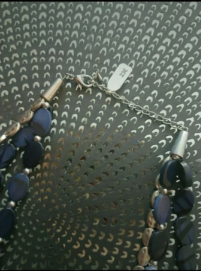 Parure fantaisie achetée dans une boutique indépendante. Valeur 29€ #perles #refletnacre #argenté #noir #bleu #mov59accessFem #marine