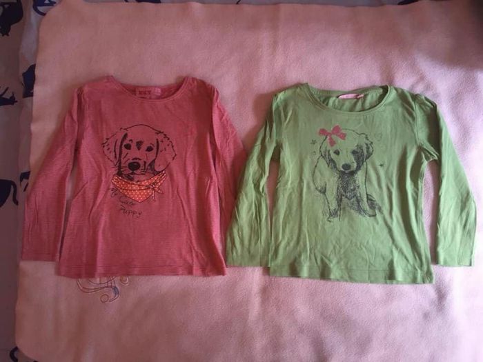 Lot de 2 hauts ML Kiabi (NKY) 4/5 ans (110 cm), vendus 3€50 ~ Qlqs motifs pailletés.