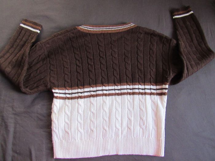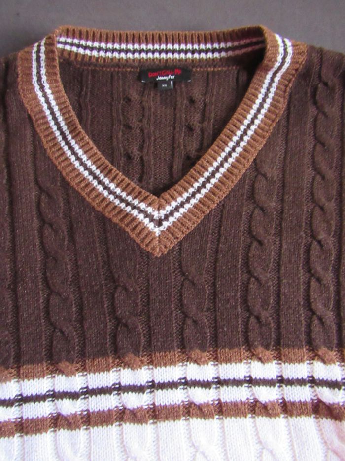 Pull col V marron et blanc Jennyfer / taille XS 100% acrylique