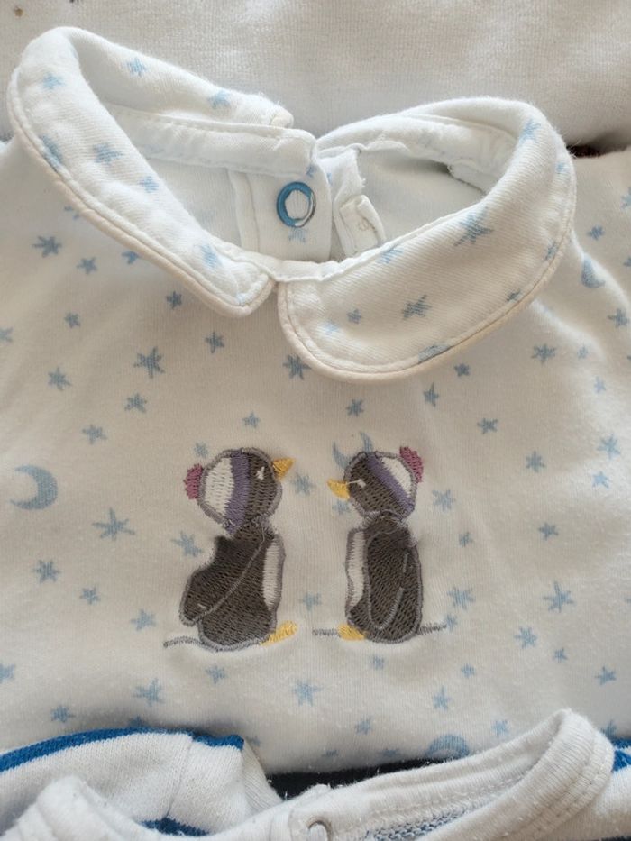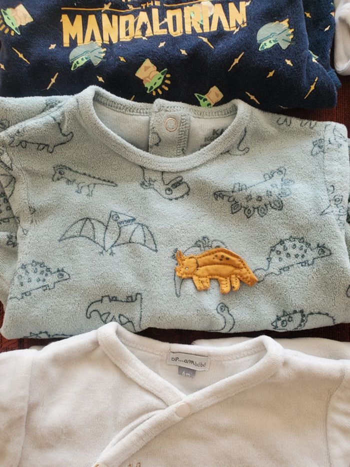 Lot de 9 grenouillères 7 en velours 1 en coton léger (le pingouin) 1 en coton semi epais (marinière) Taille 6mois Le Star Wars, Best friend et étoile filante sont en très bon état les autres bon état car bien mis mais encore très biens ! Le "mes premières nuits" à une étiquette arrière de neonat impossible à enlevée mais qui ne gêne en rien (cf photo) et est un peu grisonnant. Tous s'ouvrant par l'arrière sauf "mes premières nuits" Différentes marques : -DPAM - kitchenette - Obaïbi - Bout'chou x2 - Star Wars - kiabi - 2 inconnue D'autres photos sur demande Lot laissé à 16e si pris sans le *Star Wars*