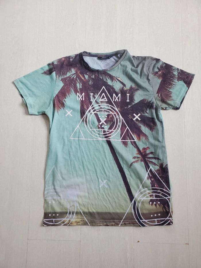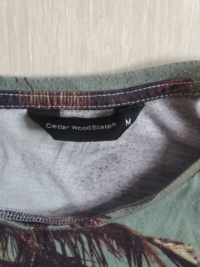 T-shirt Cedar Wood State Imprimé plage Taille M Motif de bonne qualité (photo) Bon état mais bouloche au fil des lavages (cf photo) Prêt pour une 2e vie !