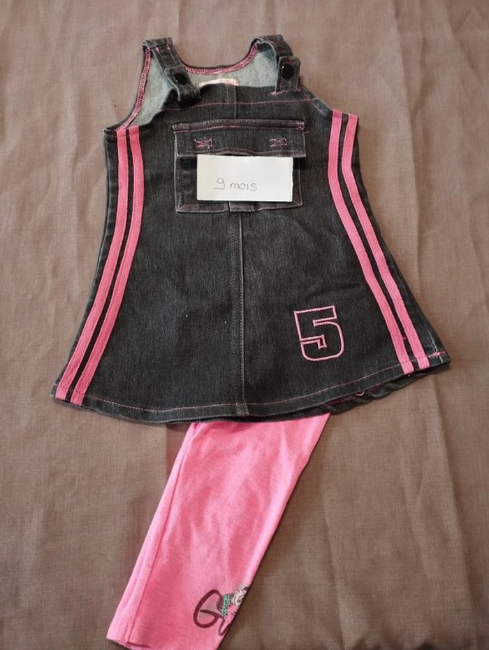 Ensemble robe ( Kimbaloo) et legging ( Orchestra) en 9 mois. Robe style jean. Très bon état