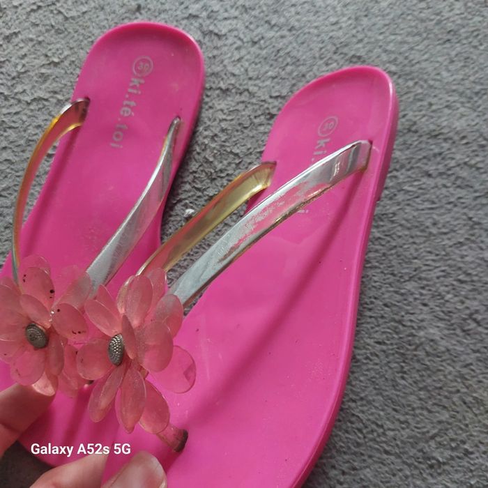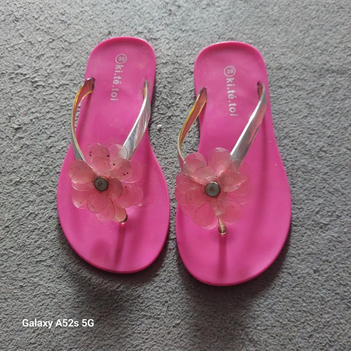 #jessicadebreuchaussurefille Tong rose avec une fleur en plastique