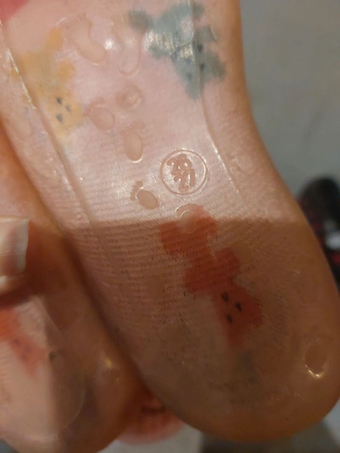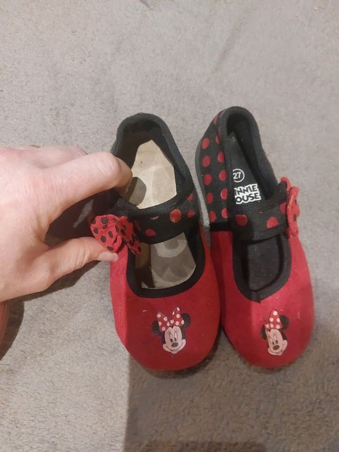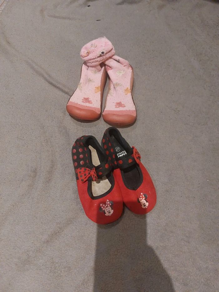 #jessicadebreuchaussurefille Pantoufle chaussette taille 26/27 des bouloches Les minnie beaucoup porté manque le tissus de la semelle Le lot 1e