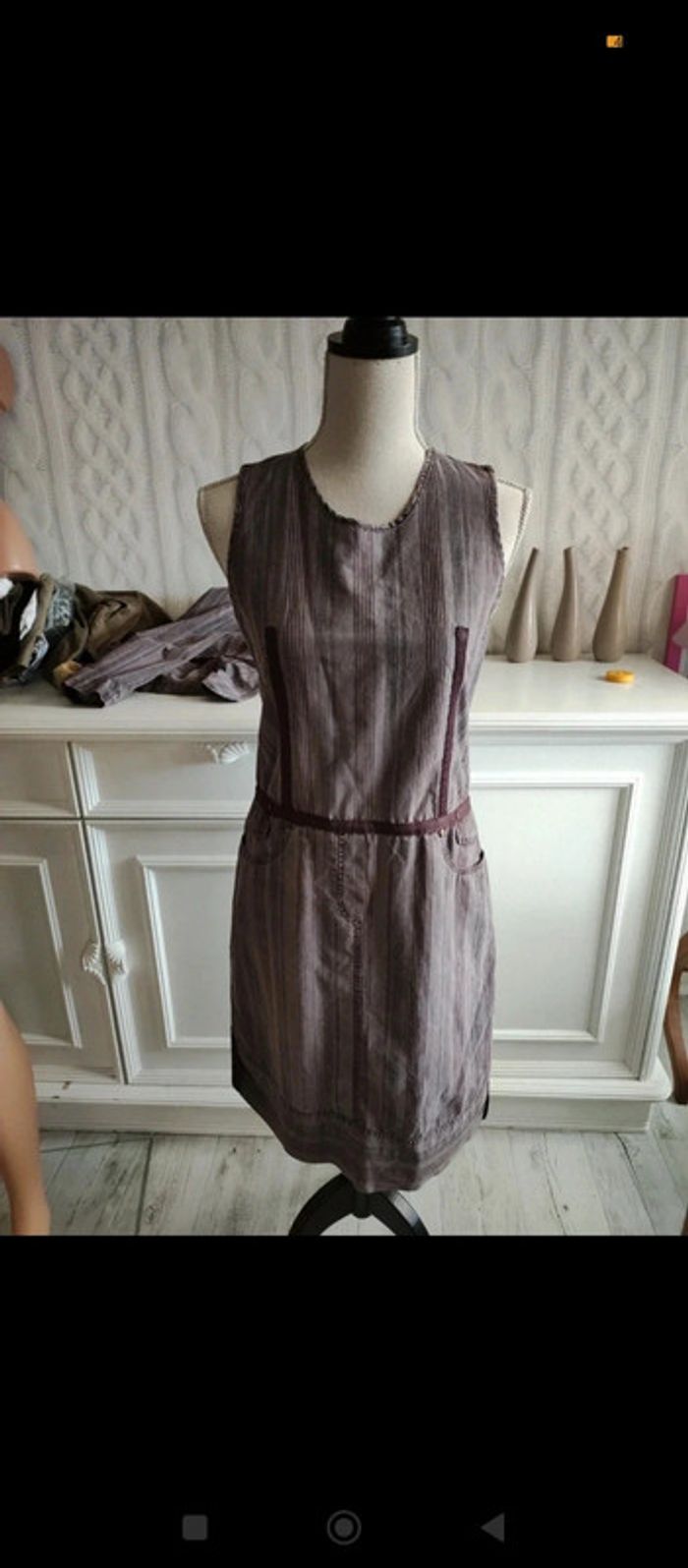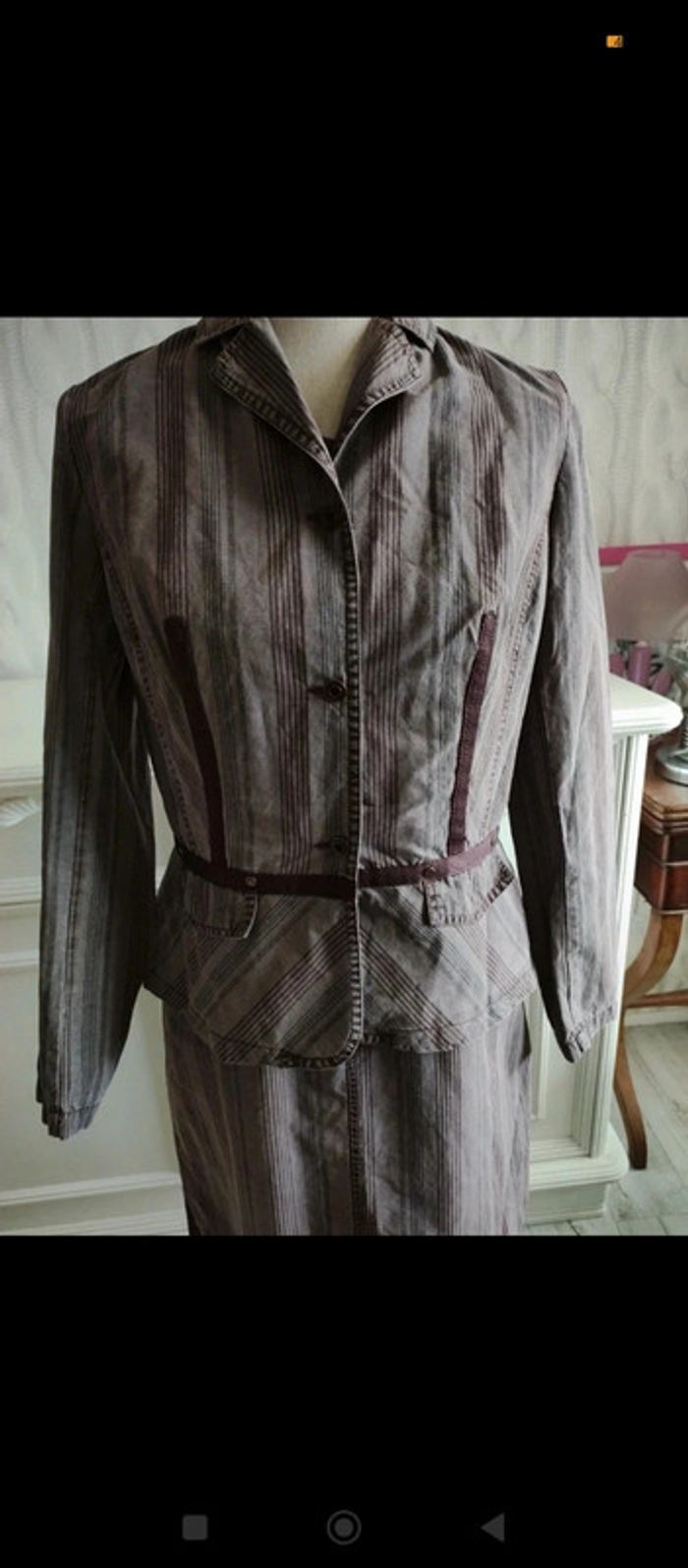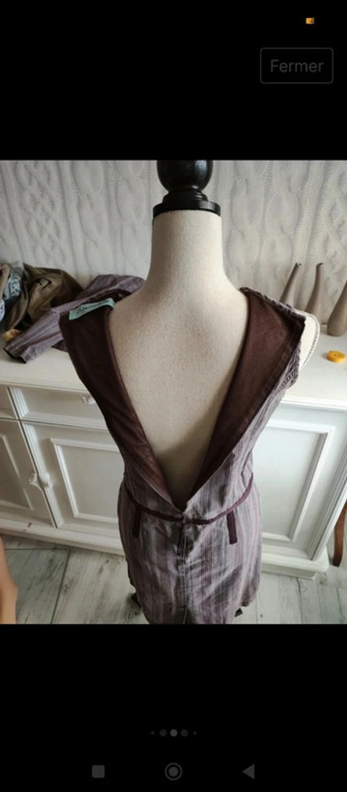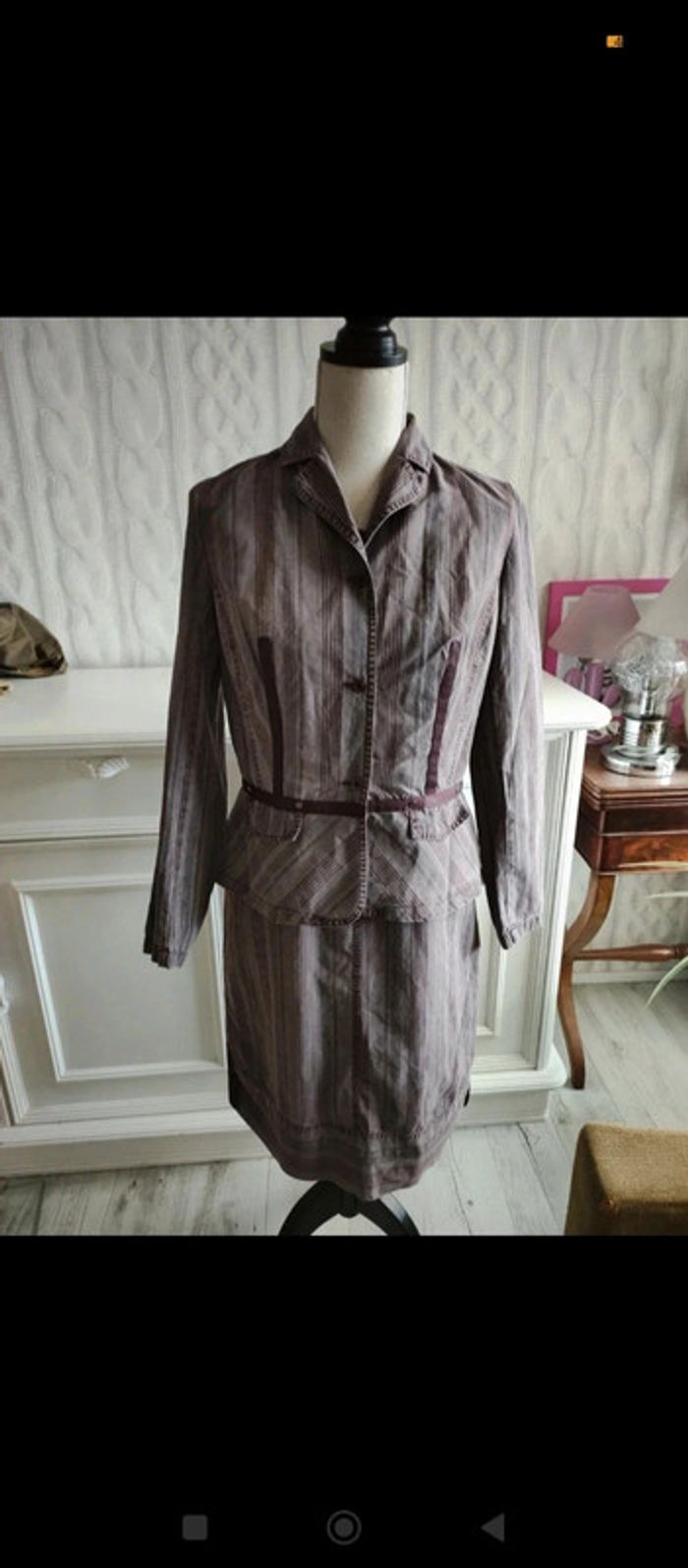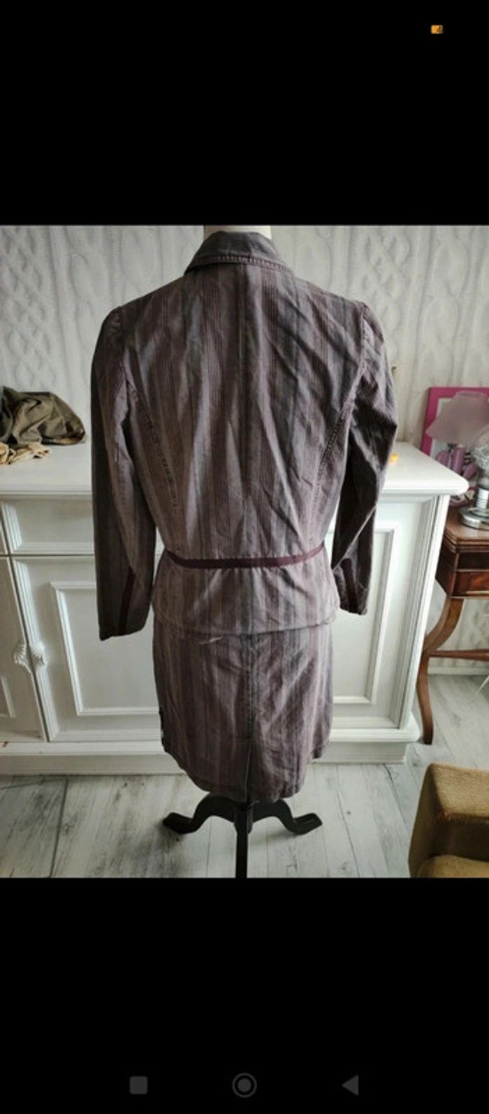 Très bon état. couleur aubergine et marron. coton et polyamide intérieur polyester. belle qualité veste cintrée et doublée. robe sans manches assortie taille genou. La veste en taille 40. La robe en taille 38 #baronnecyclo #baronnelafeemaraboutee