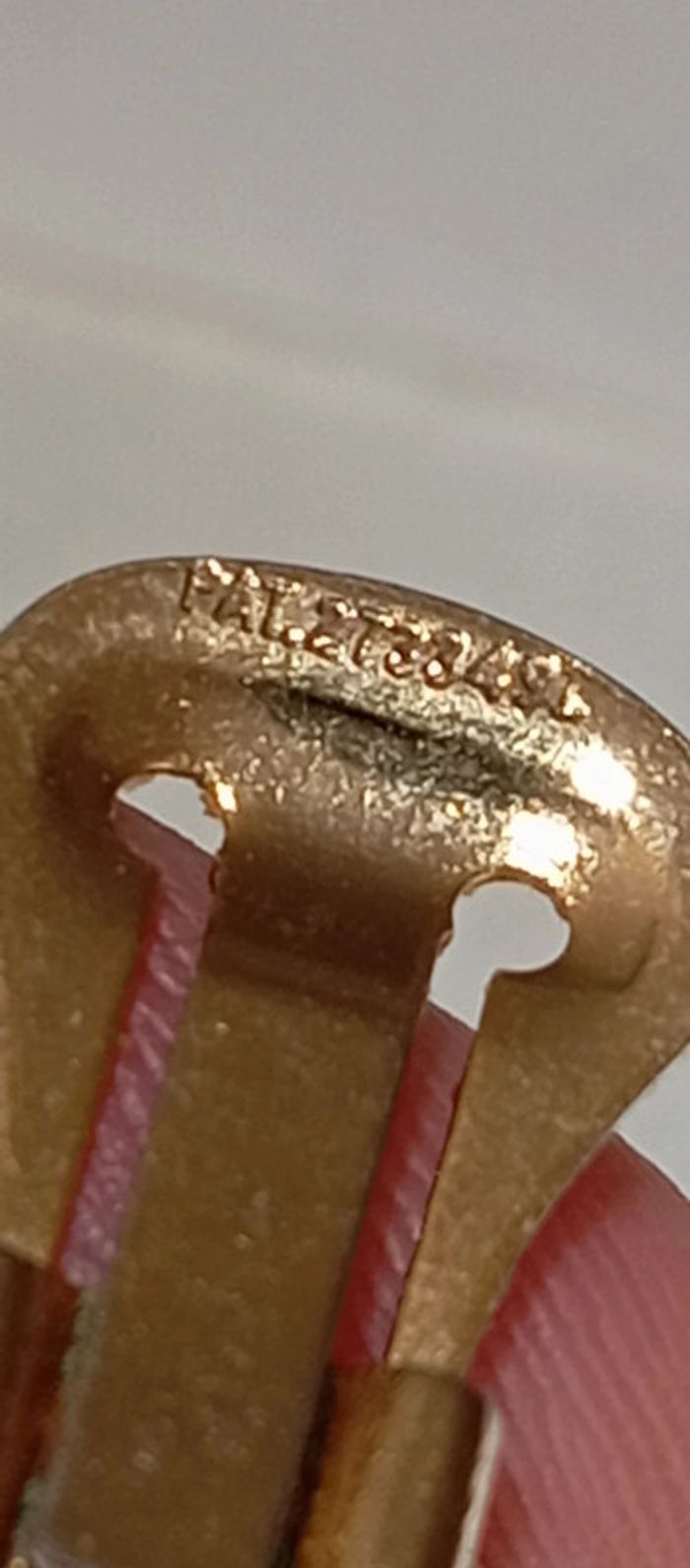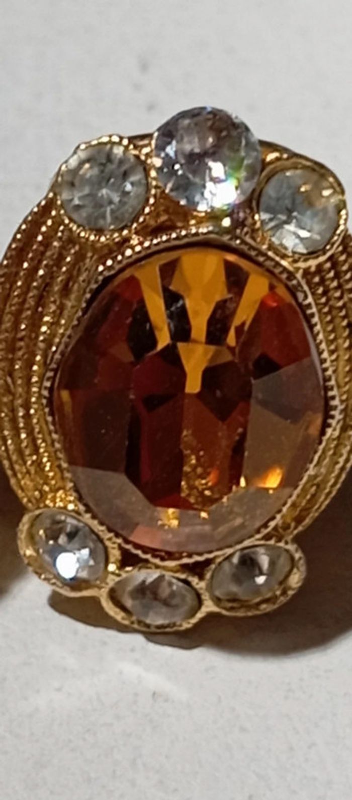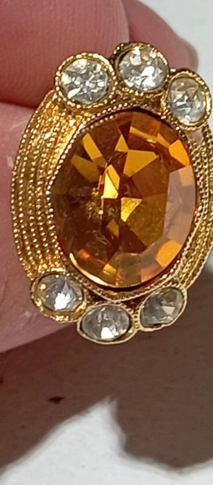 Marqué pat2733491 grosse pierre golden et six strass par boucle métal doré en très bon état Pensez aux lots ! #baronneclip