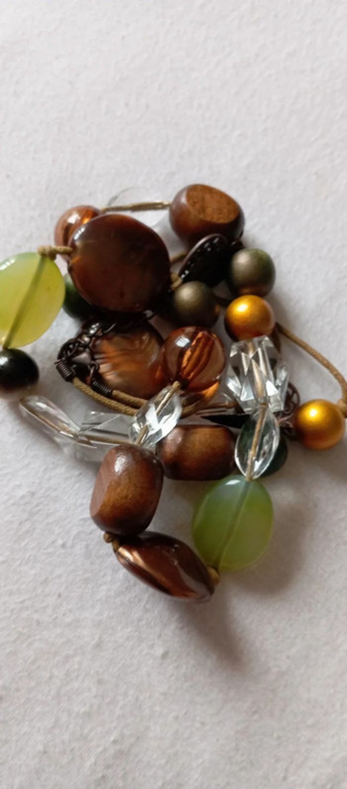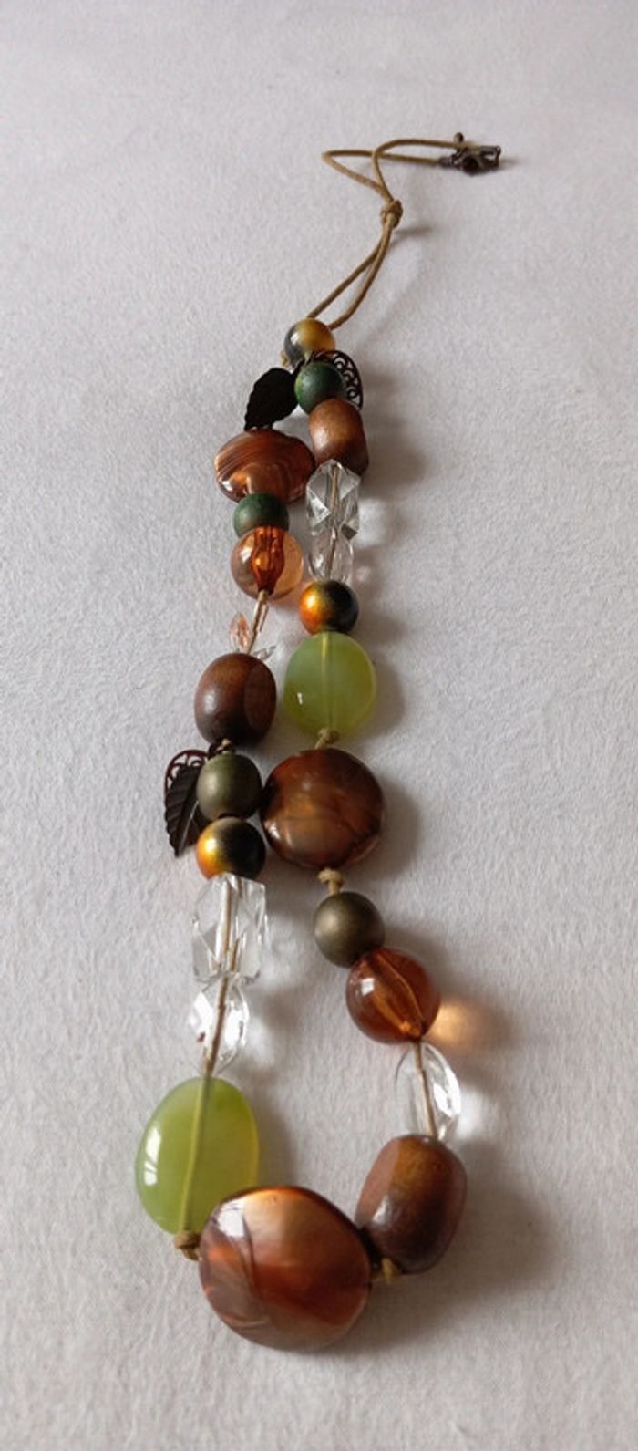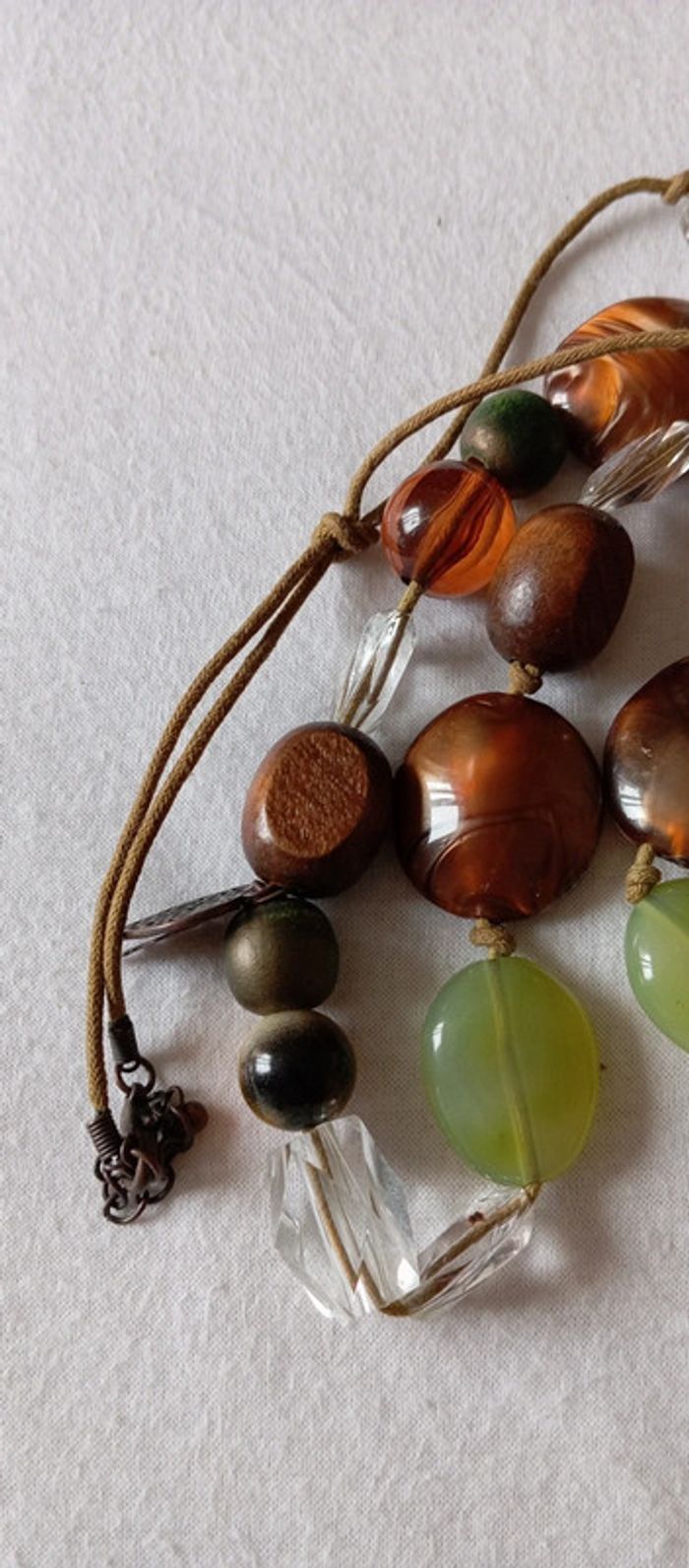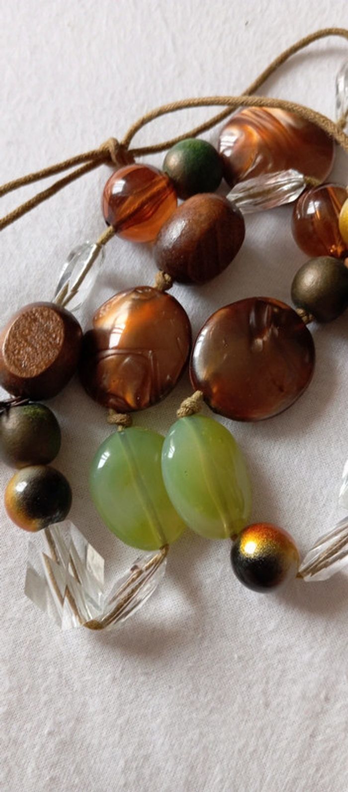 Perles en bois, plastique, corde très 70's #baronnesautoir