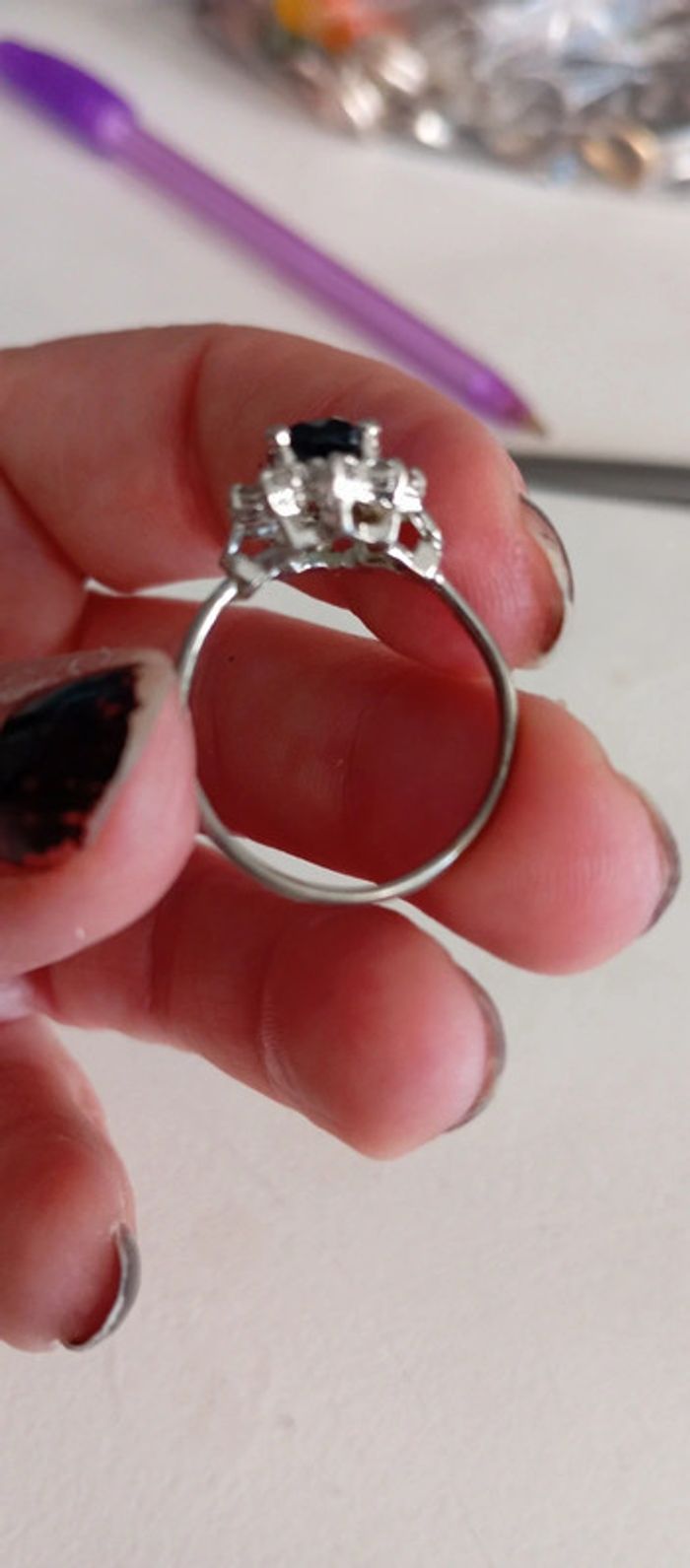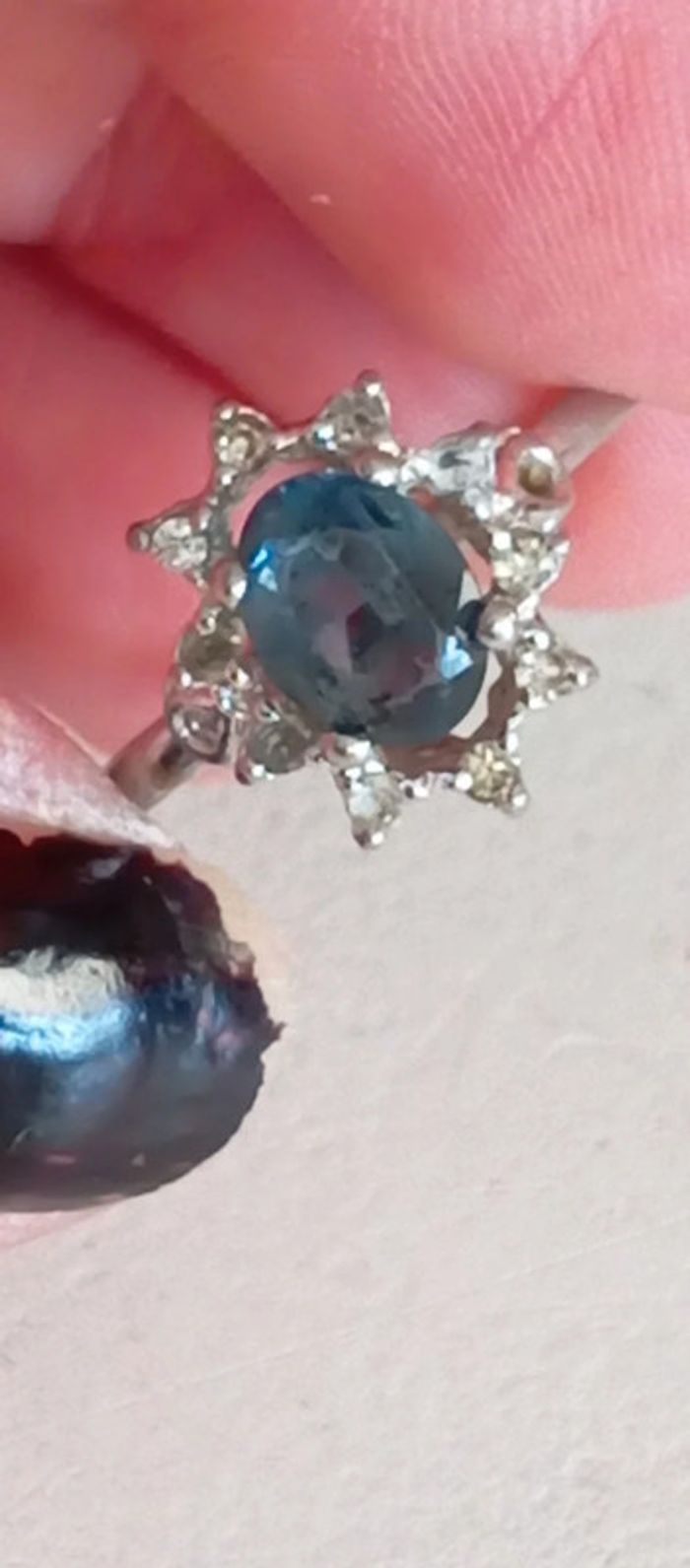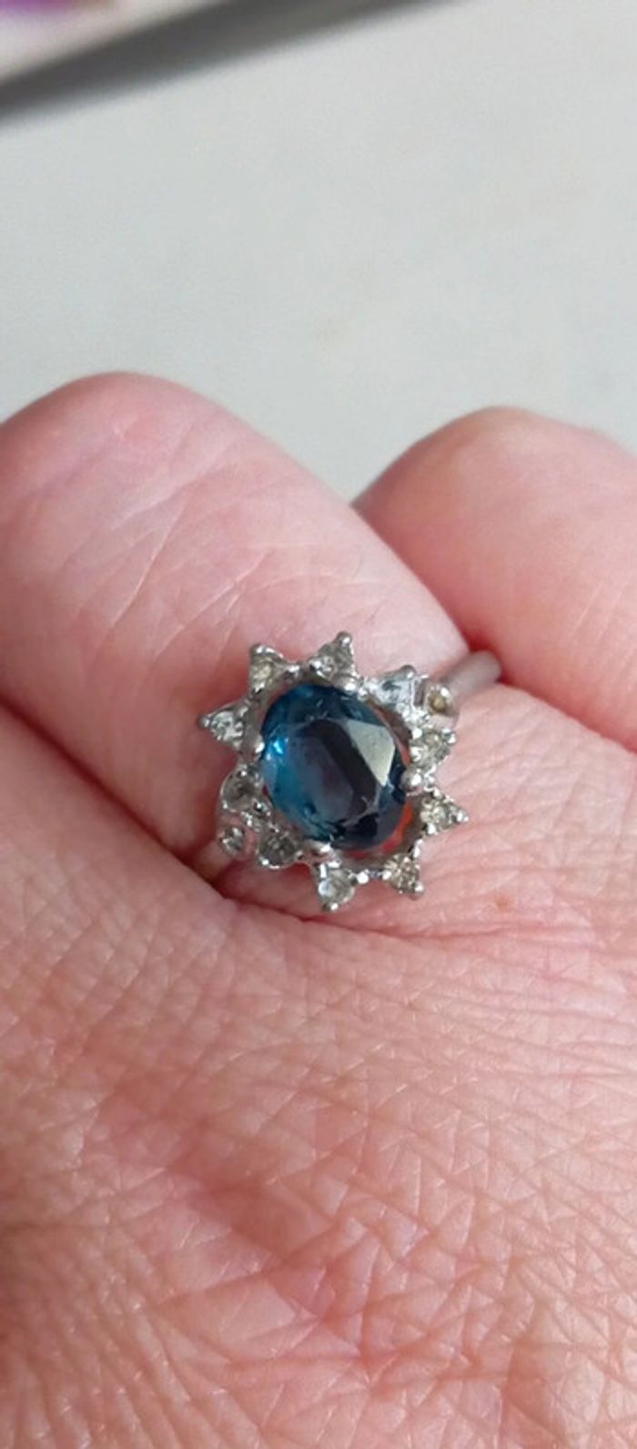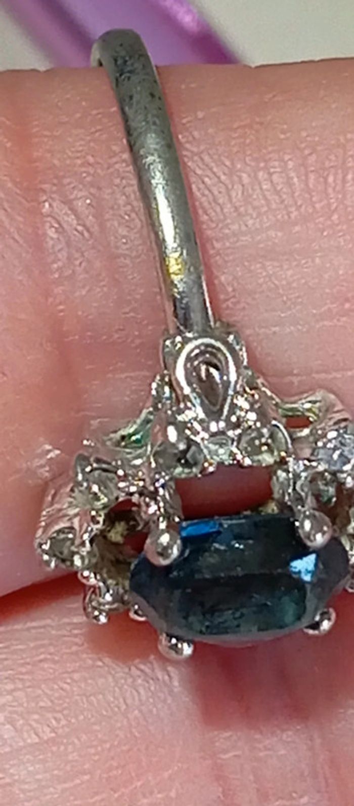 Bon état bague ancienne avec des traces d'usure sur le saphir et sur l'entourage de la bague. Honnêtement je n'arrive pas à lire l'inscription au dos de la vague DAT? Ni ne comprends ça signification il semblerait que ce soit du plaqué car il y a des traces d'usure et en dessous la bague serait dorée. Elle est réglable même si de base la circonférence est de 18 mm. Vérifiez les photos Pensez aux lots ! #baronnebague