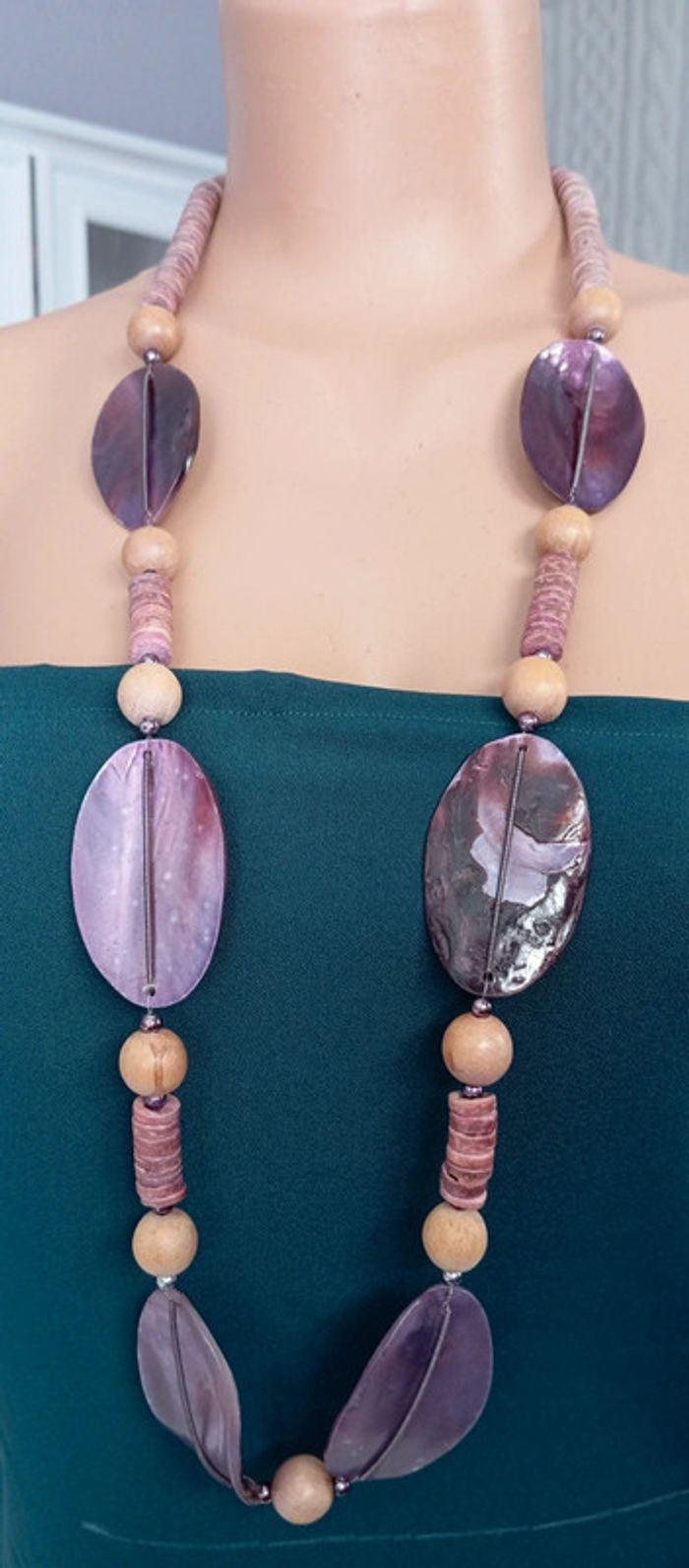 Sautoir vintage en perles de nacre et bois - photo numéro 4